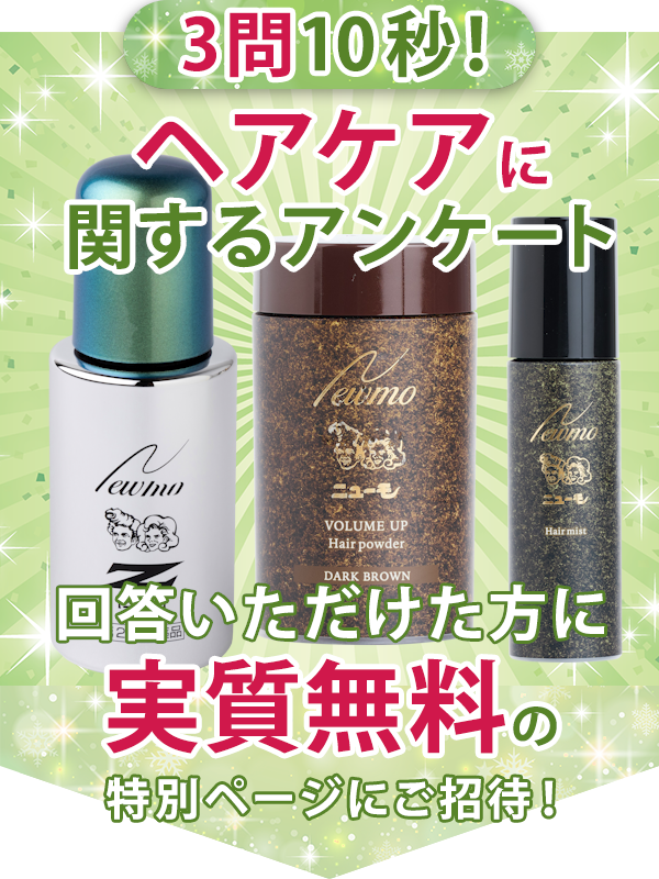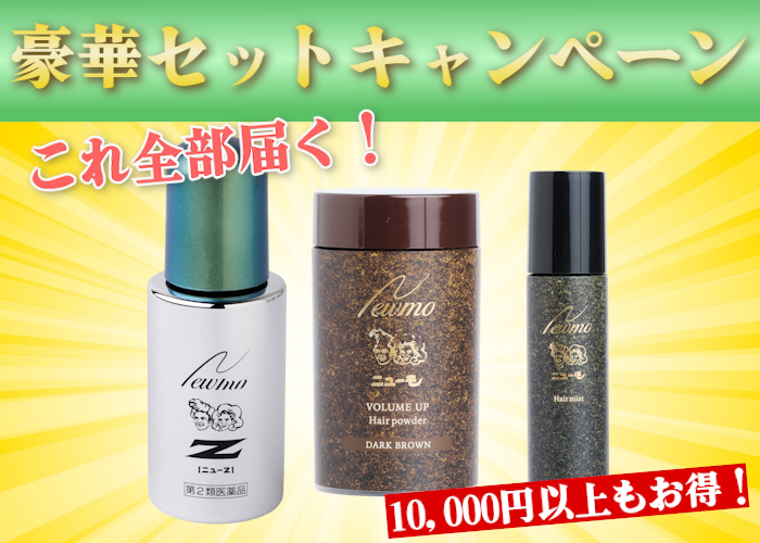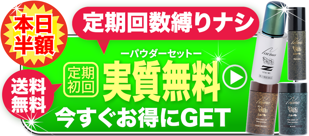 ※ニューモパウダー+ヘアミストセットは定期初回限定、一世帯一回限りニューモへアミスト+ヘアパウダー(ブラックorダークブラウンのいずれか1つ。選択可能)